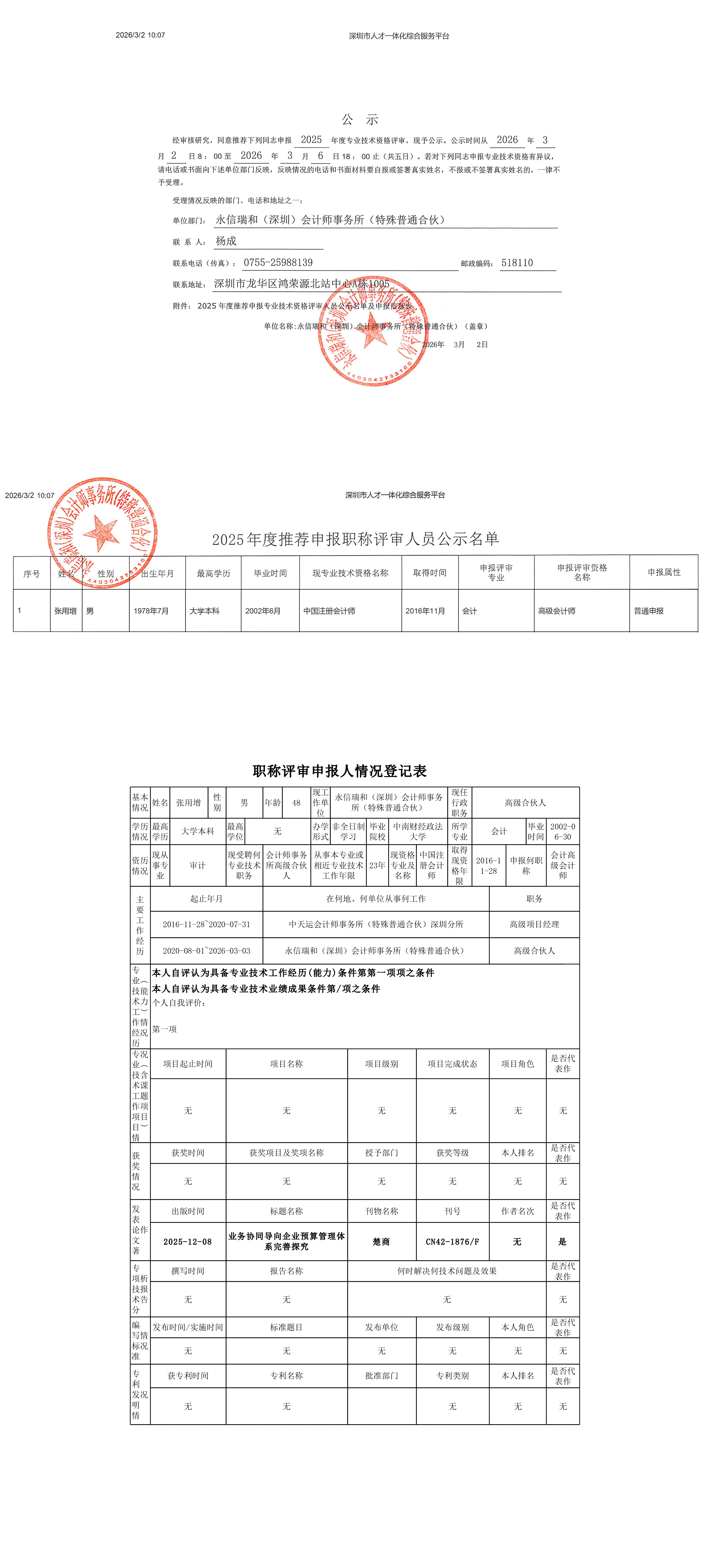 《2025年度推荐申报专业技术资格评审人员公示名单》